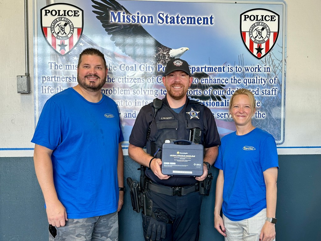 Subies of the Corn donate microchip readers to the Coal City and Wilmington Police Departments in honor of Subaru Loves Pets®. These handheld devices allow officers to quickly scan and identify lost pets in the field, even during nights, weekends, or holidays when veterinary offices may be closed.