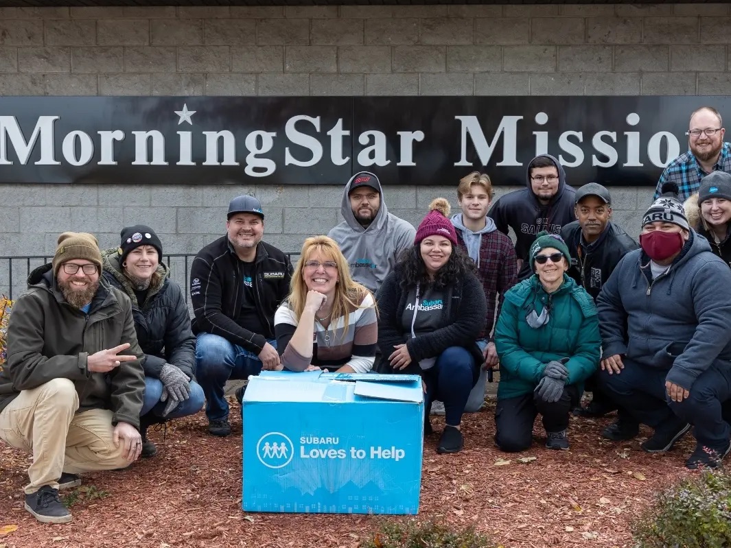 Through Subaru’s Love Promise, Hawk Subaru and Subies of the Corn took action by partnering with MorningStar Mission Ministries to personally deliver items to those in need on Saturday, November 20, 2021. Drawstring bags containing water-resistant blankets, warm socks, insulated masks, and toiletry kits were distributed to attendees of MorningStar Mission Ministries’ “Thanksgiving Banquet and Great Thanksgiving Coat Distribution”.